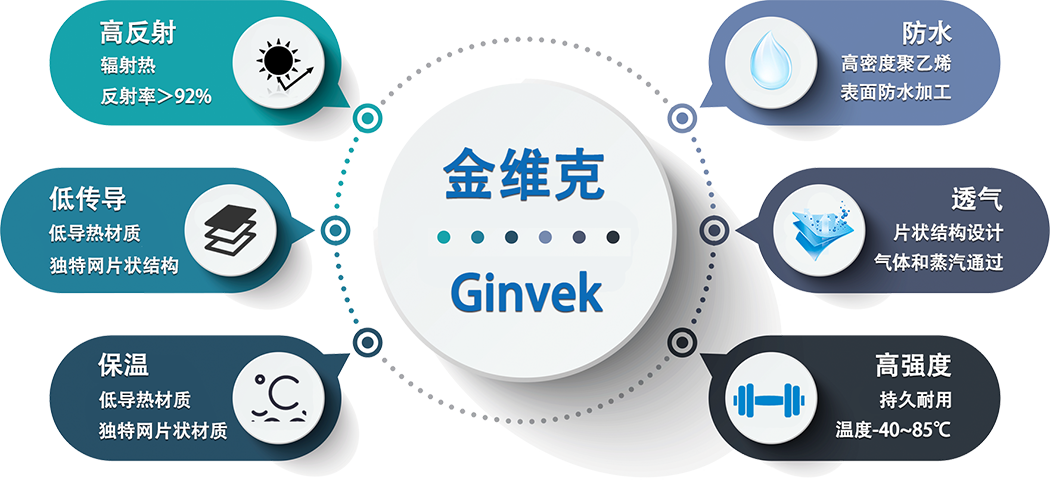 在外部環(huán)境,尤其是夏季高溫環(huán)境中,太陽輻射熱才是建筑物及其內(nèi)部溫度升高的主要來源。利用金維克材料對農(nóng)場建筑進行防護(屋頂,側(cè)墻等),能夠極大降低太陽輻射熱帶來的溫度影響,切斷升溫主要來源,從而減緩室內(nèi)溫度的上升,為生物提供事宜的環(huán)境溫度,同時,利用金維克材料的紫外反射特性及一定的阻水能力,還可以改善老舊建筑容易吸熱,吸水等缺陷,進一步給養(yǎng)殖環(huán)境提供可靠的“防護屏障”。